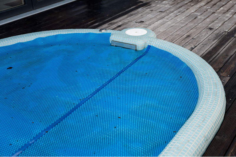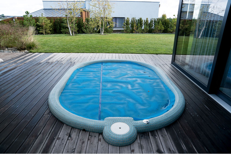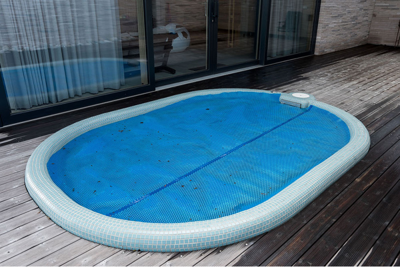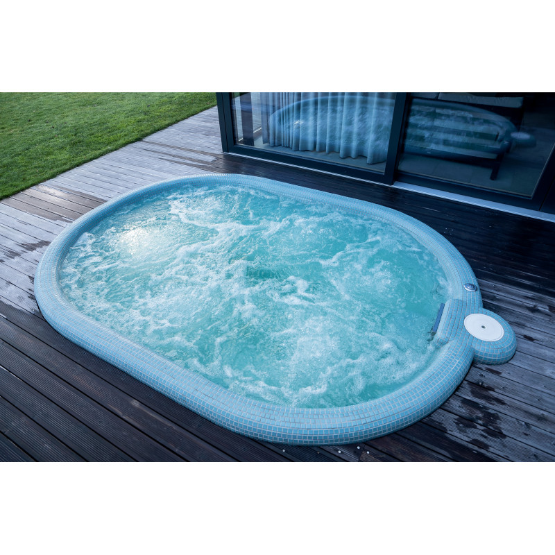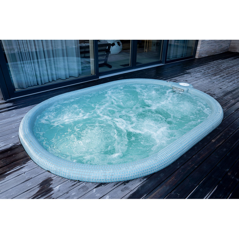 Baseine įrengti masažiniai vandens purkštukai, povandeninis LED RGB apšvietimas bei baseino uždanga, apsauganti nuo nešvarumų patekimo į baseino vandenį.