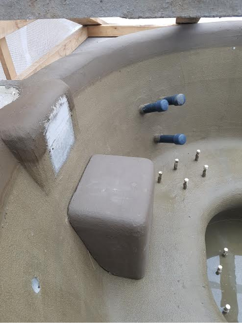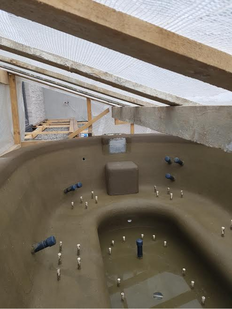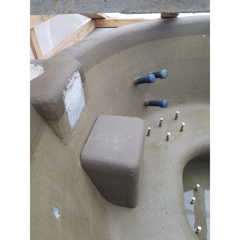 Baseino formos pagamintos iš specialaus ekstrūdinio polistirolo, pagal individualų užsakymą. Vidus padengtas grūsto stiklo mozaikos plytelėmis.