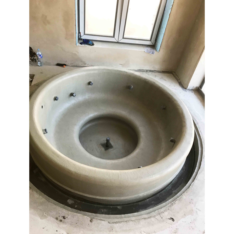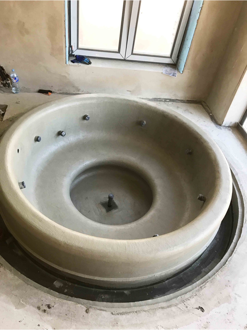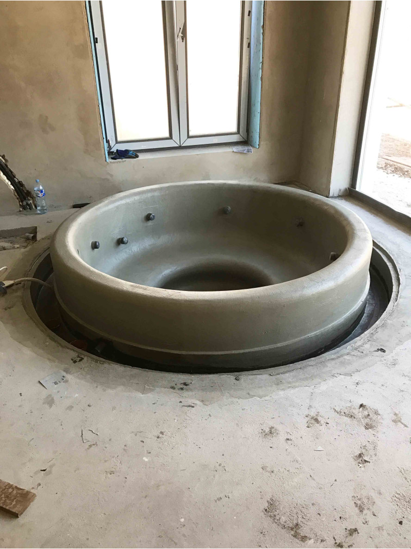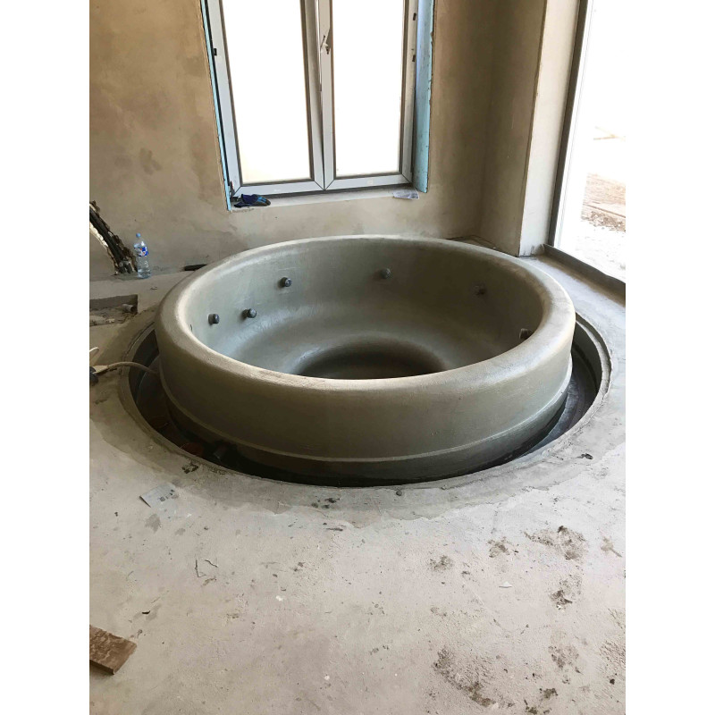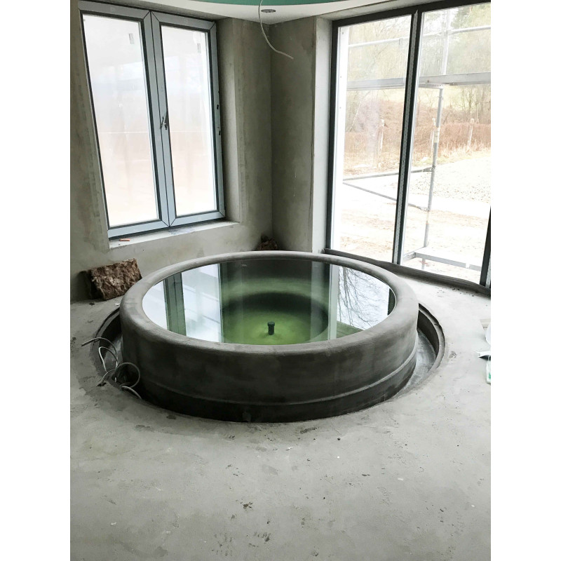 Baseinas apvalios formos, su sėdimomis vietomis aplink visą baseiną. Baseino vidaus paviršiai buvo suformuoti naudojant ištisinio pjaustymo XPS 300 polistireną. Tai ypač tvirta ir atspari drėgmei ir spaudimui medžiaga.