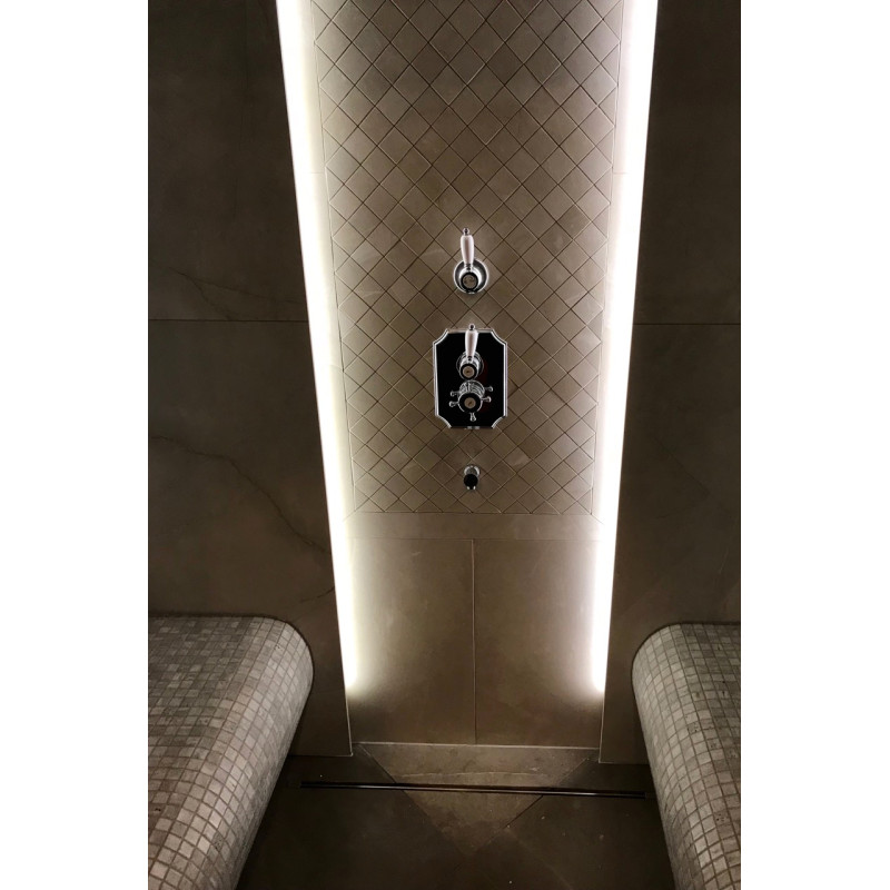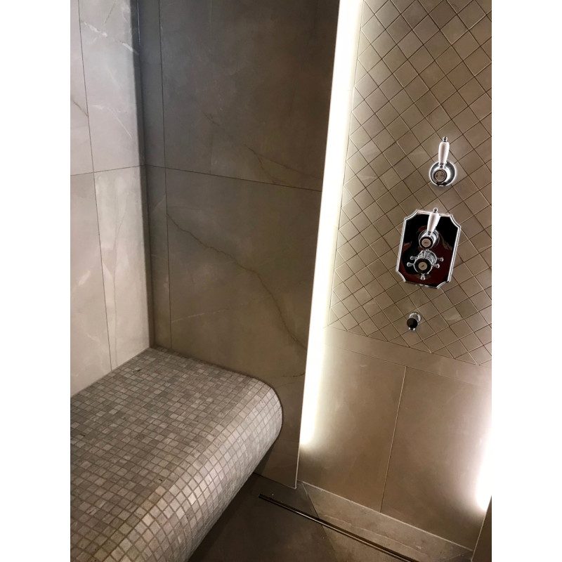 Elektra šildomos grindys ir suolai suteikia papildomo komforto kaitinantis pirtyje.