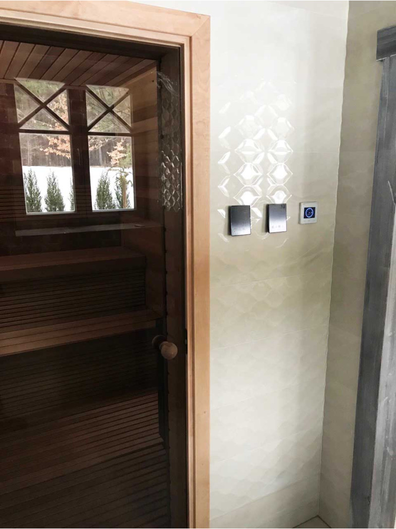 - Du valdymo pultai, įmontuoti už pirties ribų - skirti dviems atskiriems režimams valdyti. Harvia Xenio Combi CX110C valdymo pultas ir Harvia CX36I infra valdymo pultas.