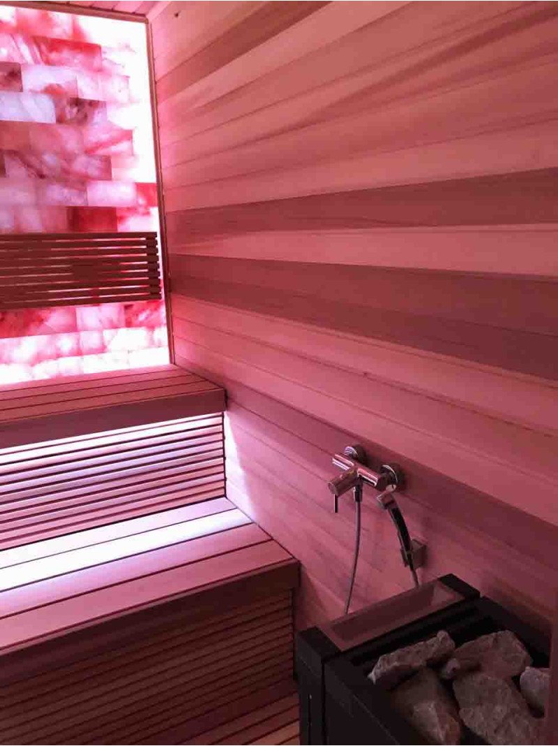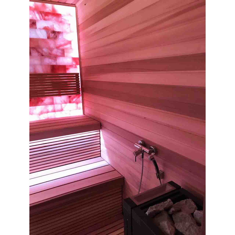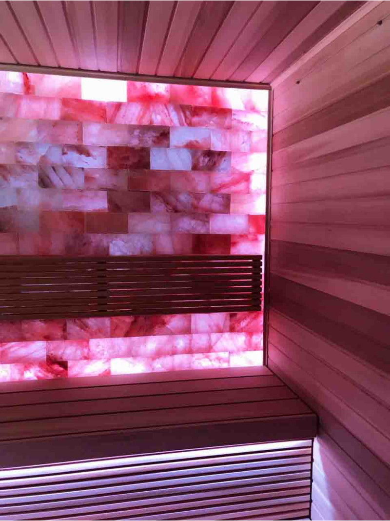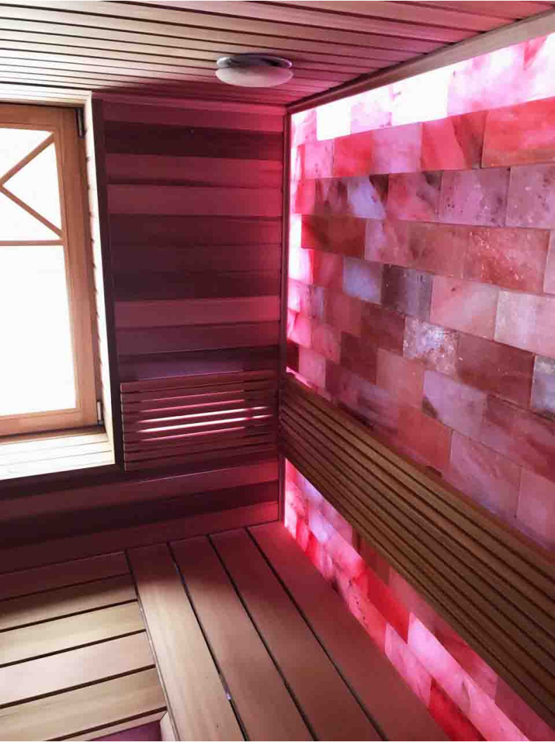 Oro kokybę ir pirties pojūčius labai stiprina įrengta didelė himalajų druskų siena. Skleidžiami neigiami jonai stiprina sveikatą, padeda įveikti daug negalavimų, tokių kaip: bronchinė astma, plaučių ir bronchų ligos, poinfarktinė būsena, hipertonija, skrandžio ir žarnyno opaligės, gastritas, skydliaukės ligos, dermatitas, įvairios alergijos, nervinės ligos, padeda įveikti stresą ir nuovargį. Atliekant prities procedūras tokioje pirtyje, nauda dviguba.