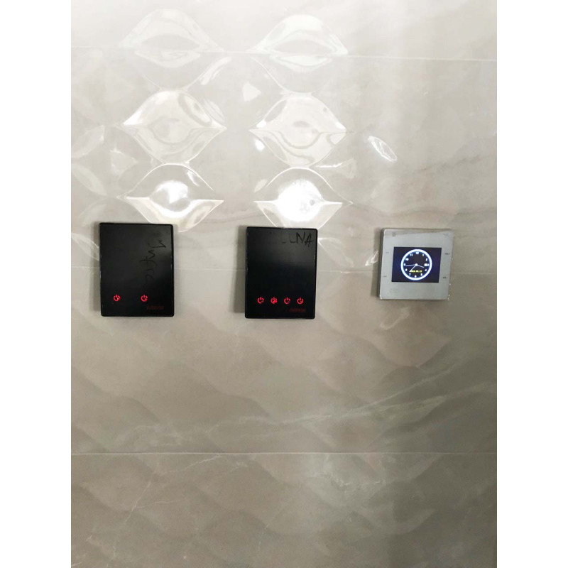 - Muzikinis centras, įleidžiamas į sieną su spalvotu LCD ekranu. Tinkantis naudoti priepirtyje. Komplektuojamas su drėgmei ir karščiui atspariais garsiakalbiais. Valdomas mygtukais arba nuotoliniu valdymo pulteliu.