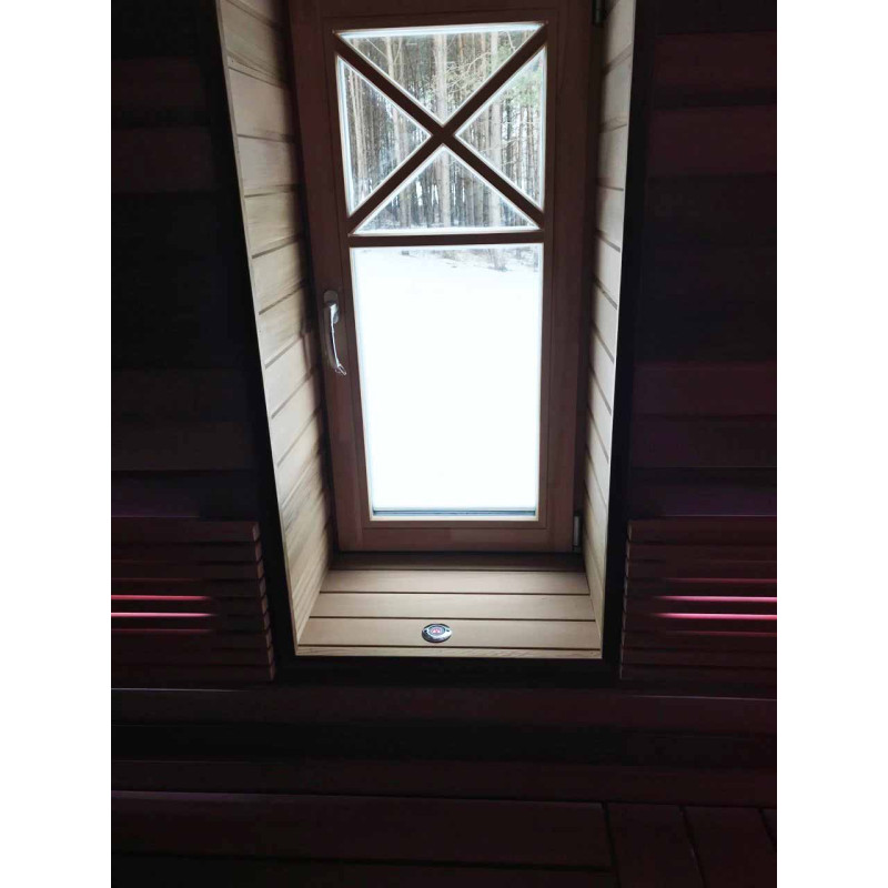 Šis pirties projektas išskirtinis tuo, jog buvo sujungti du pirčių tipai - tradicinė sauna ir infraraudonųjų spindulių pirtis.