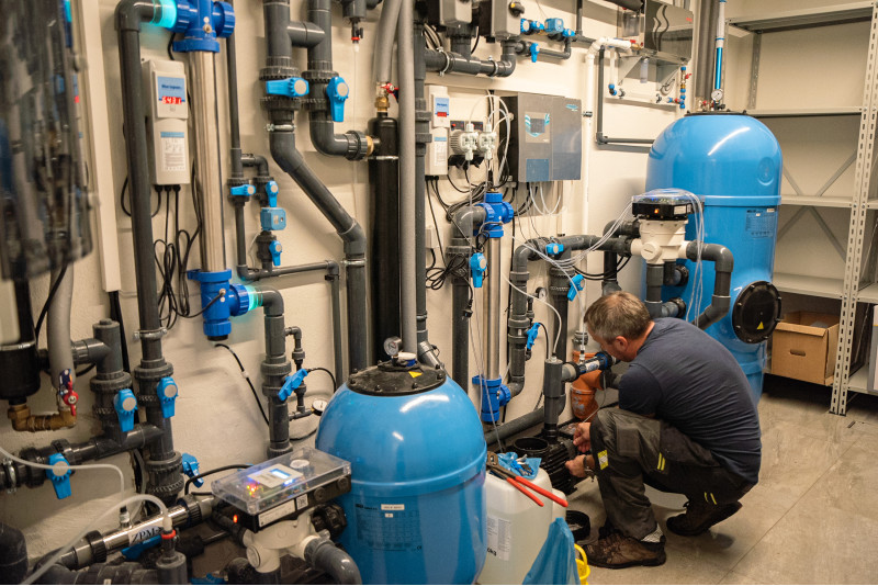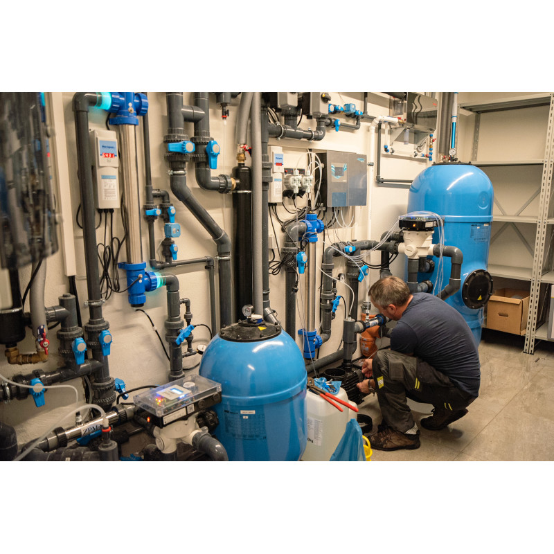 - automatinė filtravimo sistema, dozatoriai, filtrai, siurbliai, bakterijų destrukcijos blokas, UV lempa ir kiti filtravimo sistemą pildantys įrenginiai.