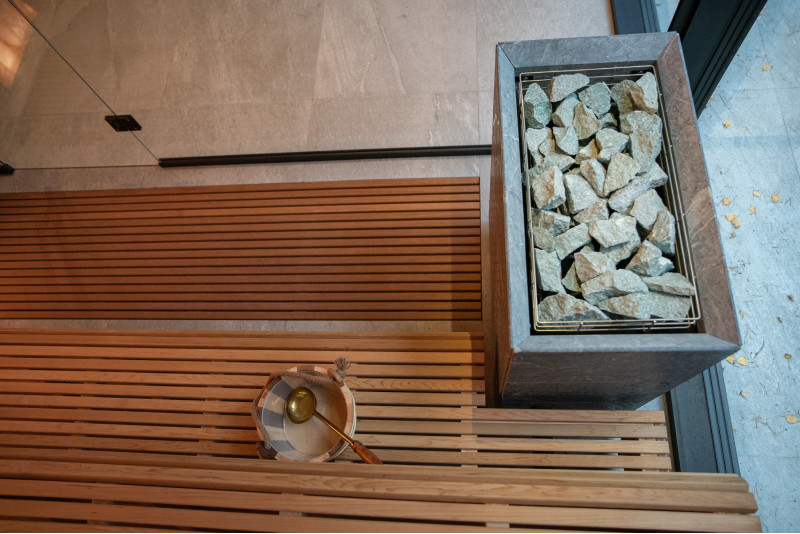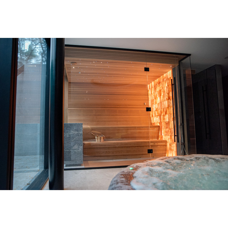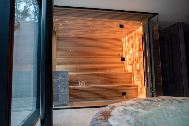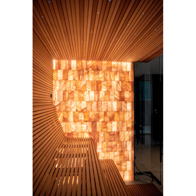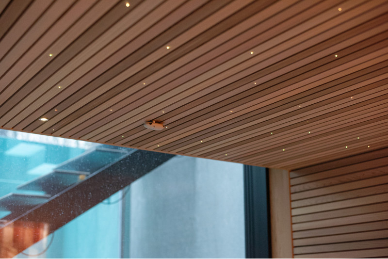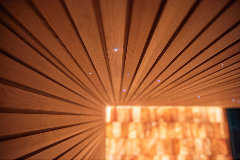 - apšvietimo sistema "Žvaigždėtas dangus" ir vienas šviestuvas lubose, nukreiptas į krosnelę,
