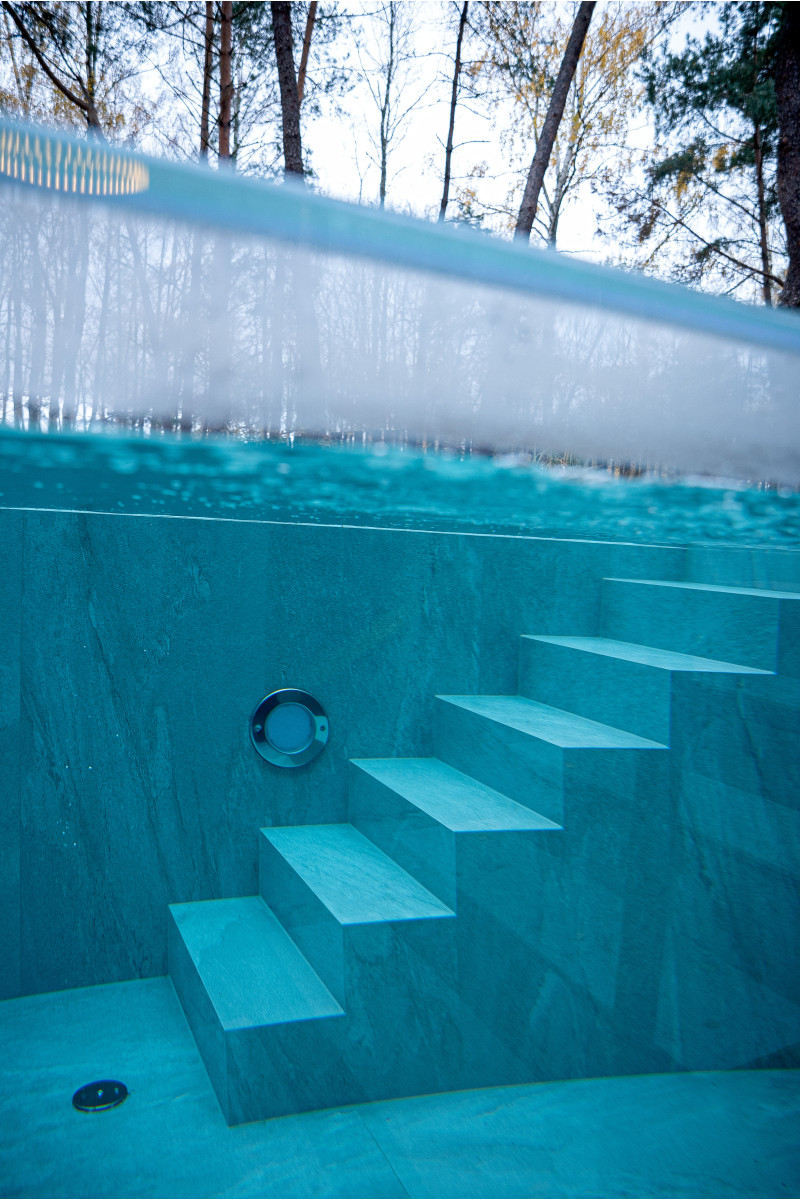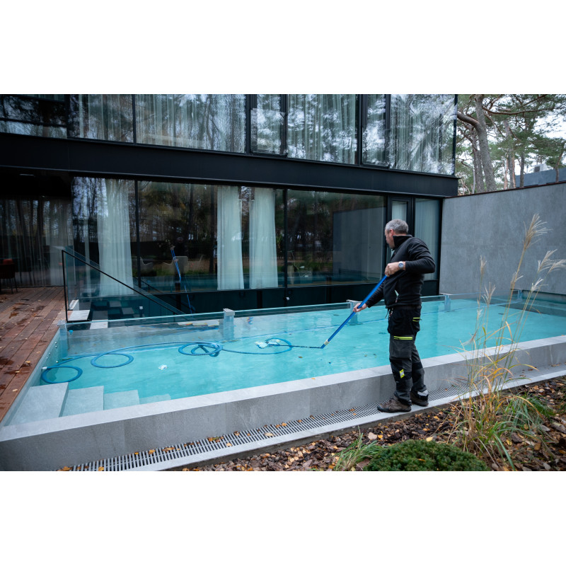 - baseino uždengimo mechanizmas su atveriamais PVC dangčiais, sumontuotas įgilintame baseino dugne. Baseino uždengimas - Žaliuzi Covrex Classic - užpildytos putomis, atsparios užšalimui ir kiti baseino uždengimą papildantys įrenginiai,