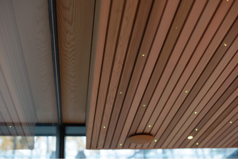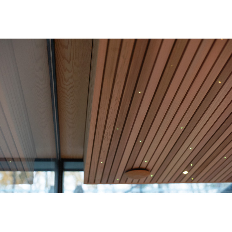 - pirties vidaus medinės detalės - įvairių spalvų kedro mediena, ažūro lentelės, grindų grotelės - įvairių spalvų Iroko juostelės.