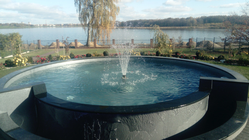 Privačioje teritorijoje Telšiuose įrengtas modernus tradicinio tipo fontanas su kaskadiniu perbėgimu.