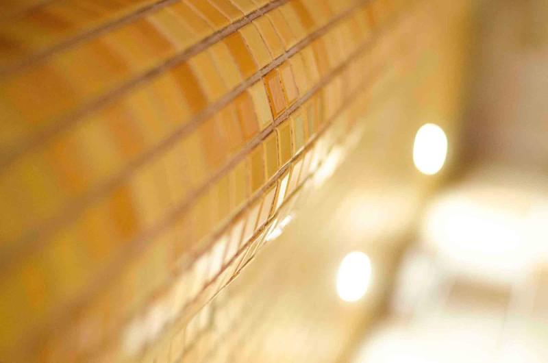 Po pirties gultais sumontuotas LED apšvietimas, apšviečiantis grindis.