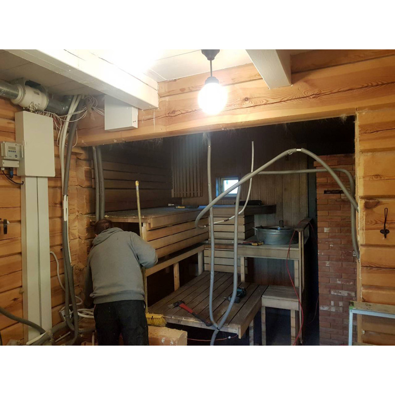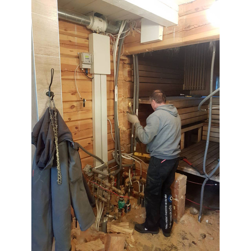 Pirtyje sumontuotas ventiliatorius oro įpūtimui, užtikrinta gera oro cirkuliacija.