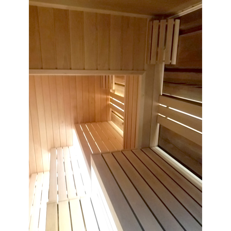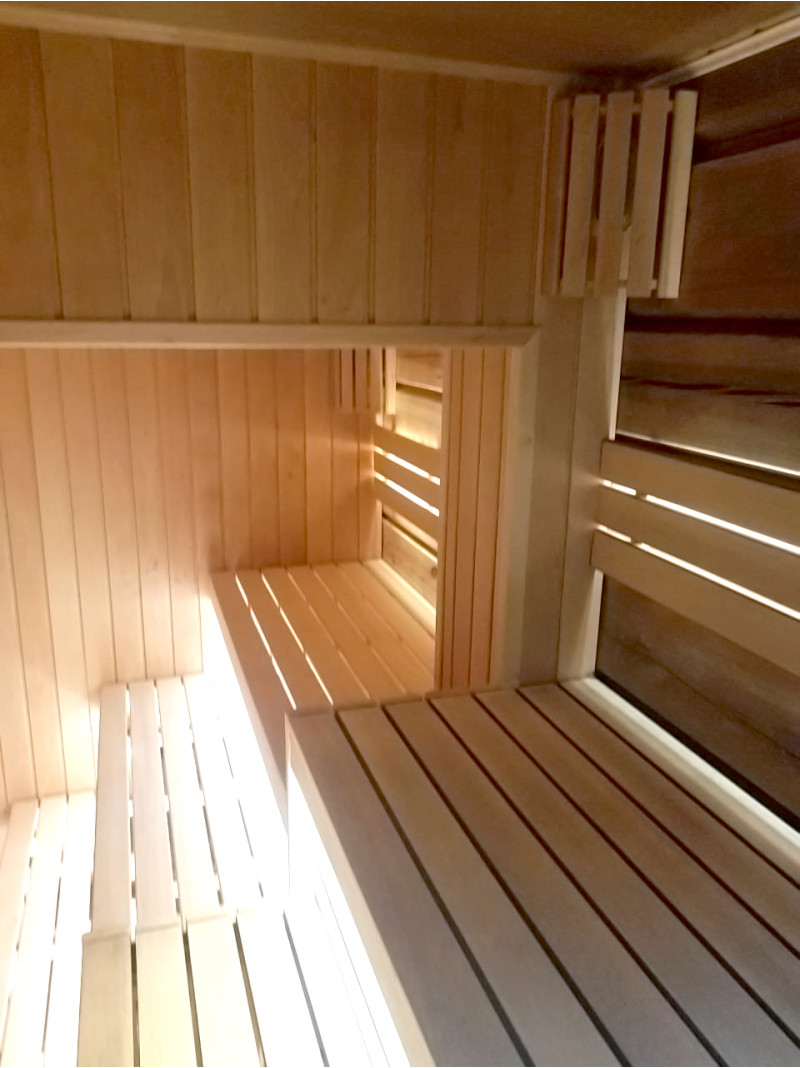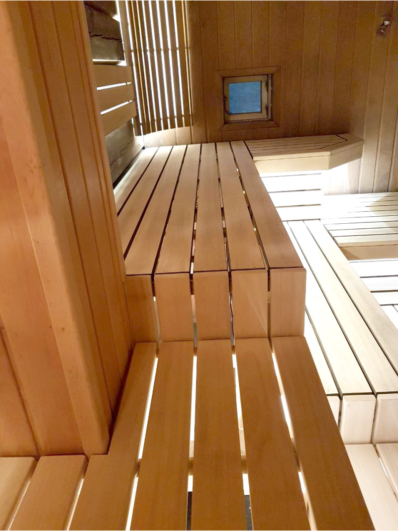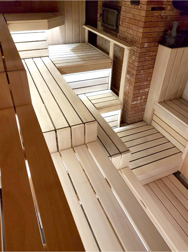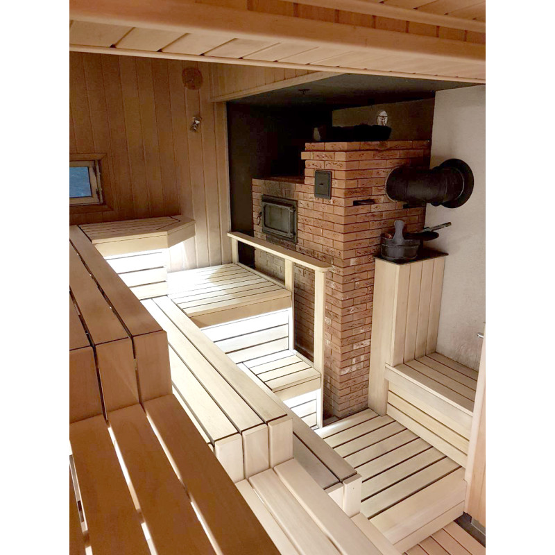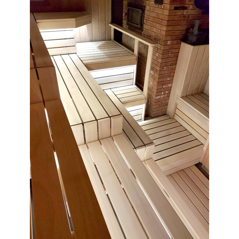 Mediena impregnuota, apsaugota nuo didelio karščio ir paruošta ilgalaikiam naudojimui. Gultai bei nugaros atramos išteptos specialiu pirties medienai skirtu aliejumi.
