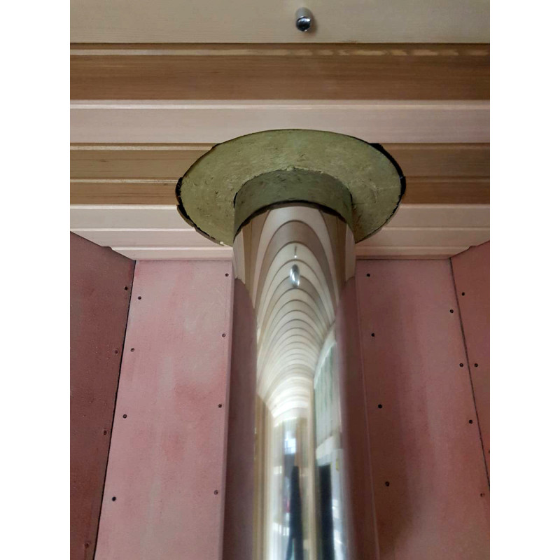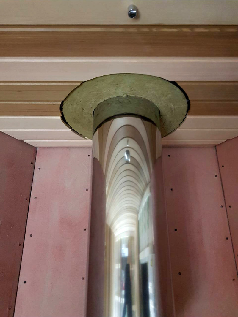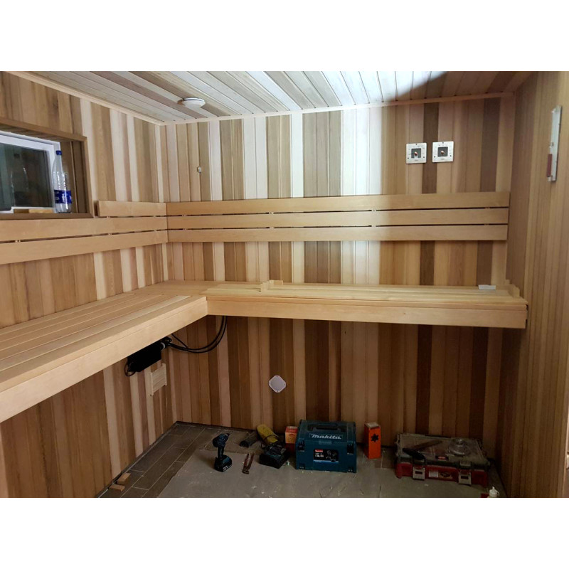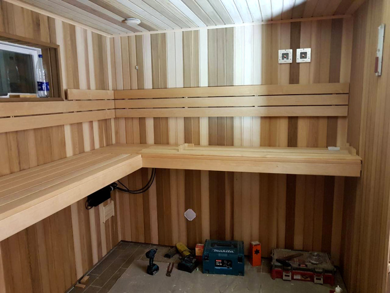 Dėl didelio patvarumo pirties apdailai pasirinkta alksnio ir kanadietiško kedro mediena. Kedro mediena linkusi sugerti mažiausiai karščio, tai suteikia pirčiai daugiau komforto.