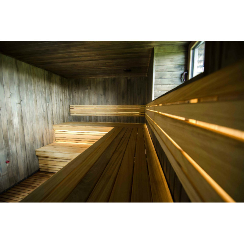 Pirties gultams, nugaros atramoms ir grindų grotelėms pasirinkta itin kokybiška afrikietiška Abachi mediena. Ši mediena ne tik puikiai atrodo, bet taip pat ir neįkaista, todėl prisilietus prie jos neįmanoma nusideginti. Ant tokių gultų ypač patogu ir malonu mėgautis pirtimi.