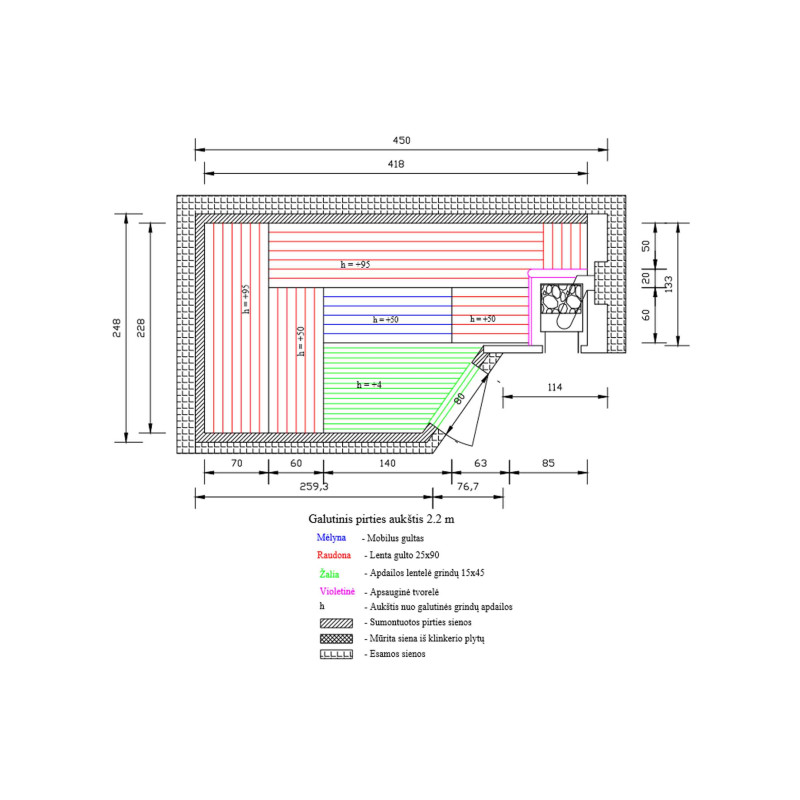Pirties mediena vaškuota, aliejuota, paruošta ilgalaikiam pirties naudojimui.
