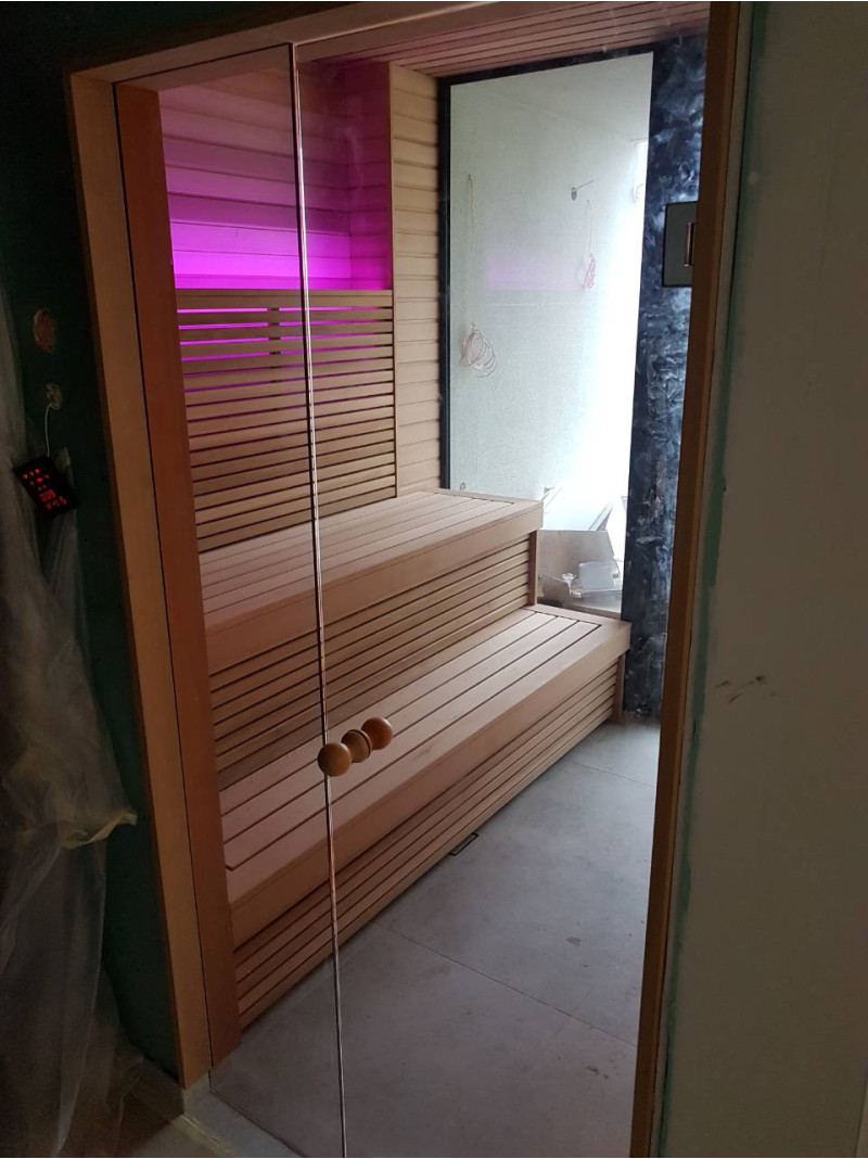 Pirtyje įrengta unikaliai atrodanti siena iš himalajų druskos blokelių. Šį vaizdą dar labiau sustiprina sumontuotas baltos šiltos spalvos apšvietimas po druskų blokeliais, pabrėžiantis druskos spalvą ir raštus. Himalajų druska pirtyje naudojama ne vien dėl savo grožio, bet, teigiama, kad himalajų druska mažina alergijos ir astmos simptomus, pakelia nuotaiką ir suteikia energijos, neutralizuoja elektromagnetinę radiaciją, mažina statinį elektros krūvį ore.