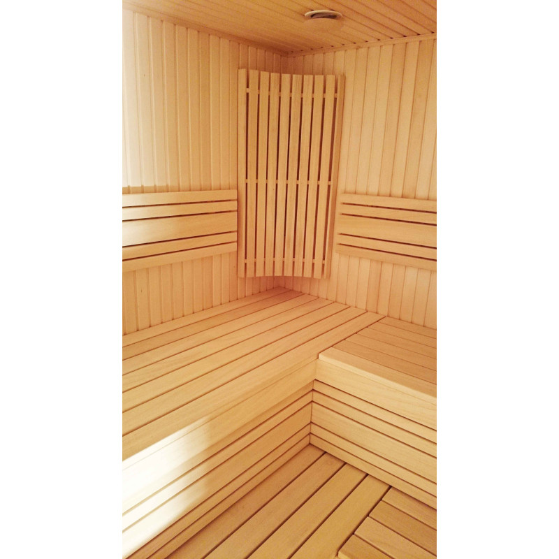 Lubos ir sienos pirtyje dengtos liepos dailylentėmis kaip ir atramos, grindų grotelės bei krosnelės aptvarai. Pirties gultai - aukščiausios rūšies abachi medžio. Gultų, atramų ir sienų mediena impregnuota ir nulakuota, nualiejuota - specialiai paruošta naudoti karštyje ir drėgmėje.