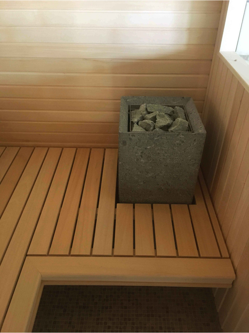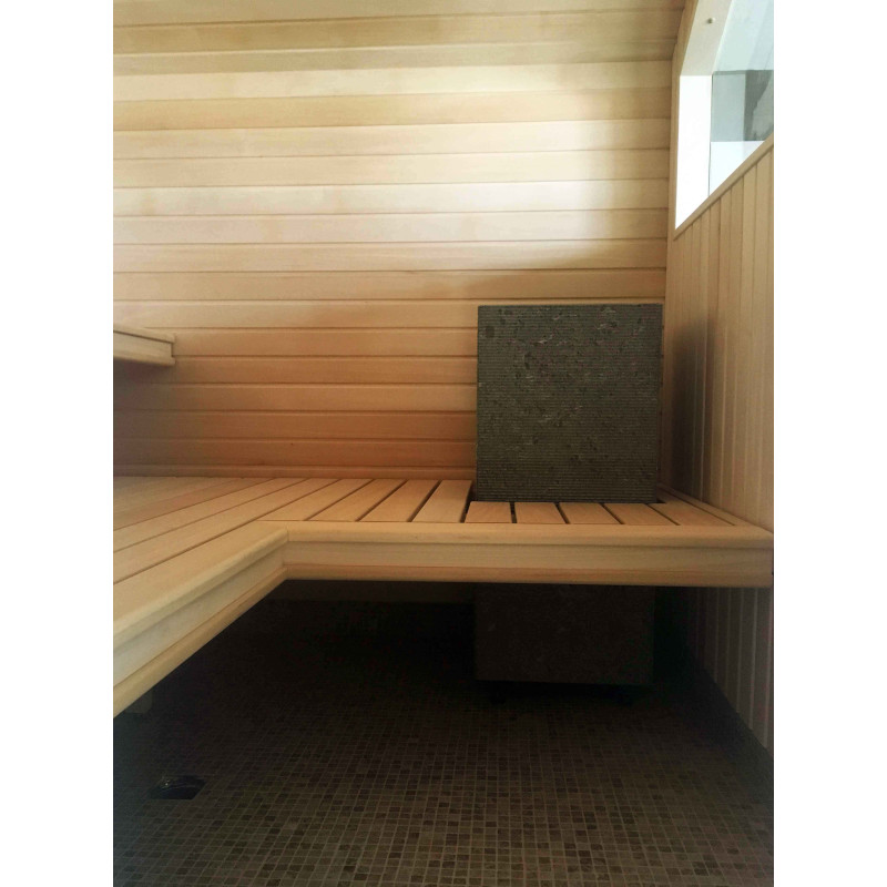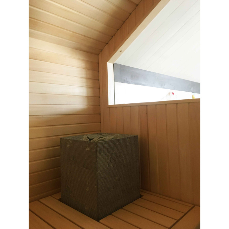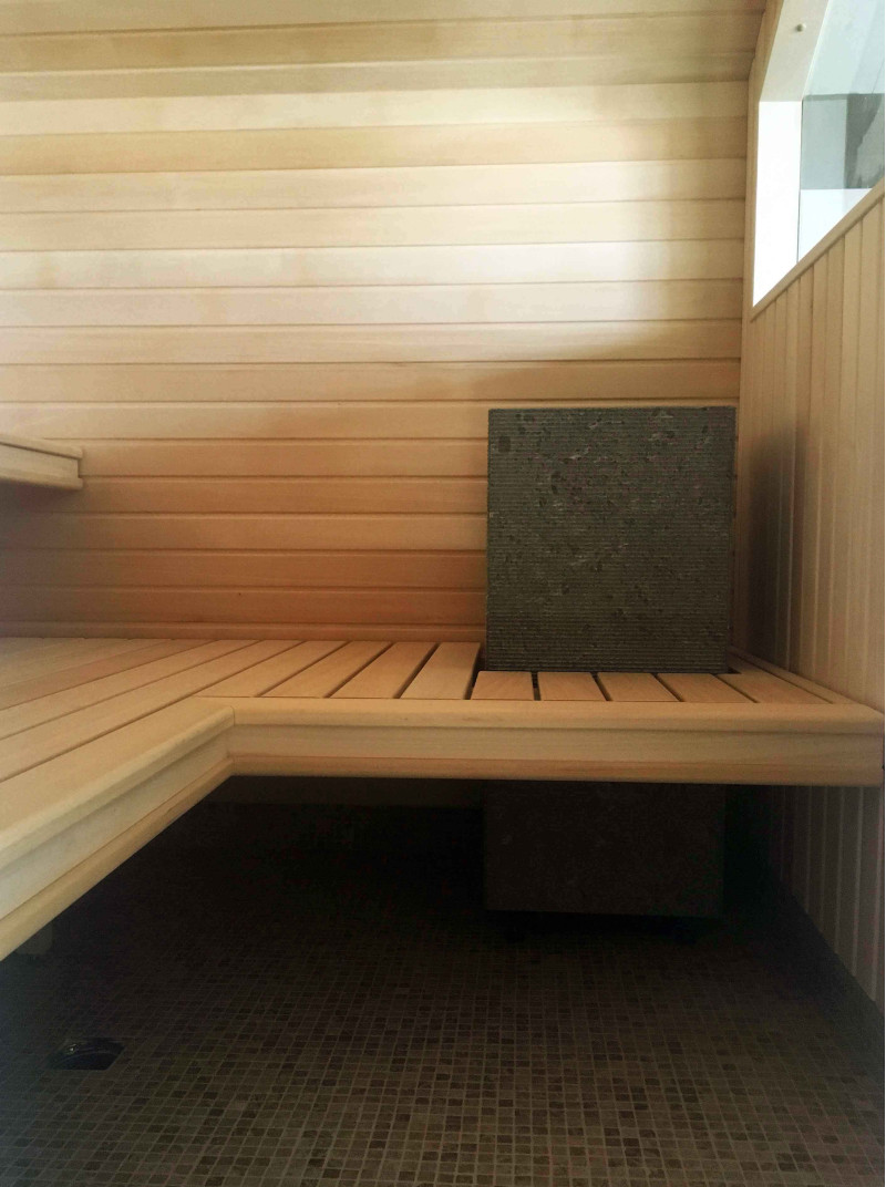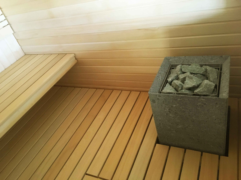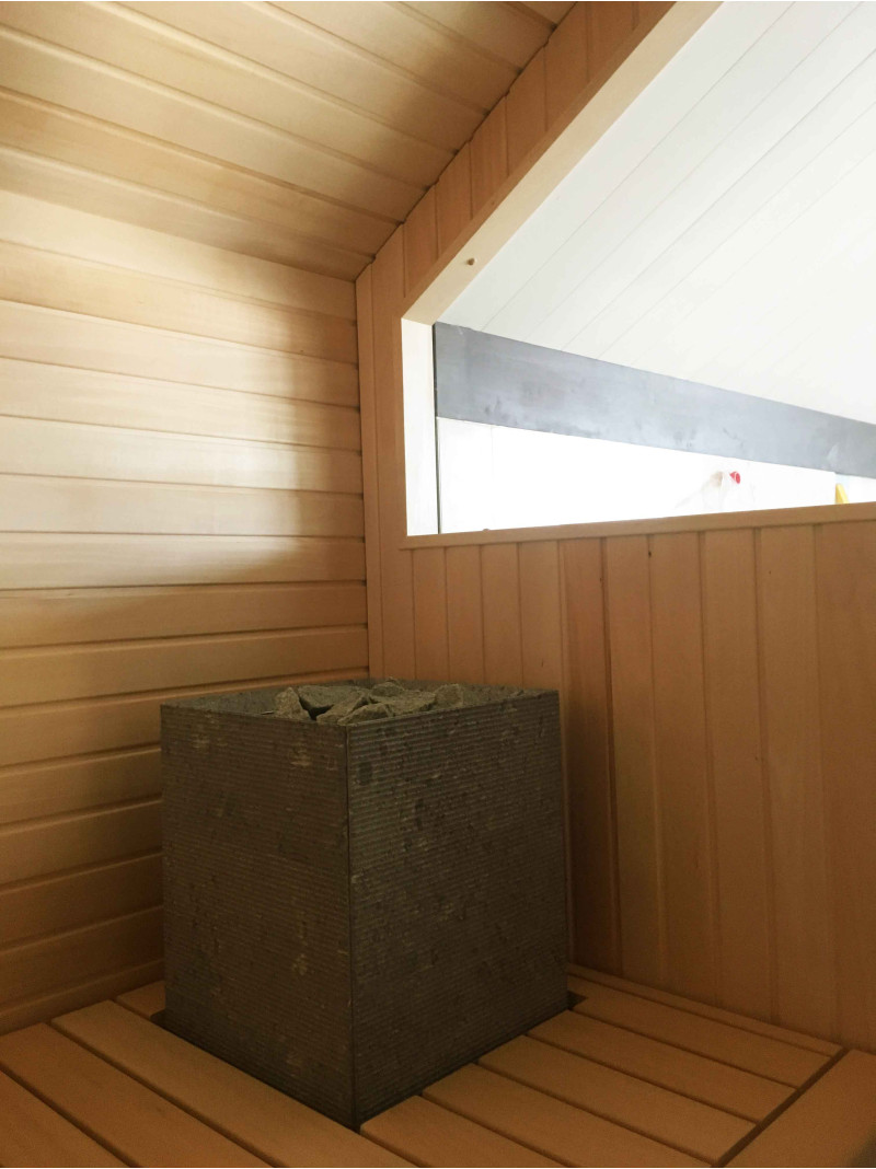 Pietinėje Palangos dalyje - Nemirsetoje įrengta sauna su į suolus integruota krosnele ir panoraminiu langu.