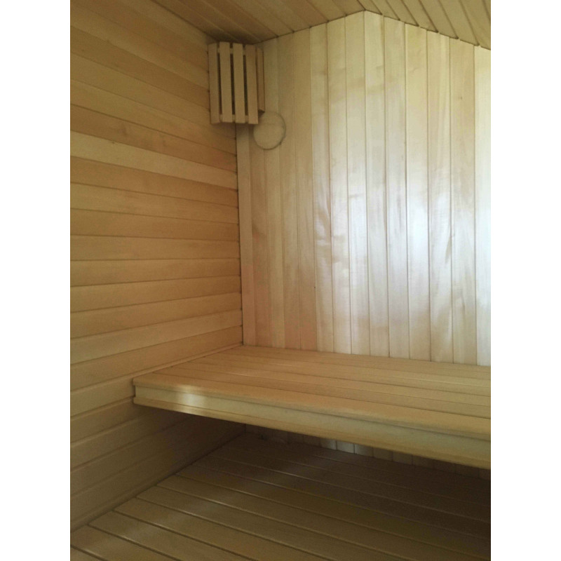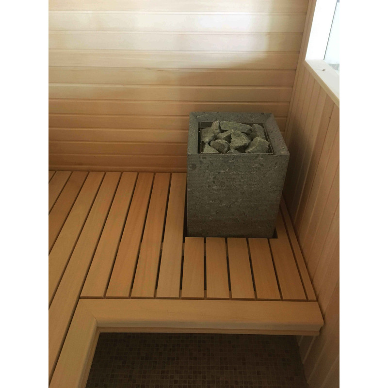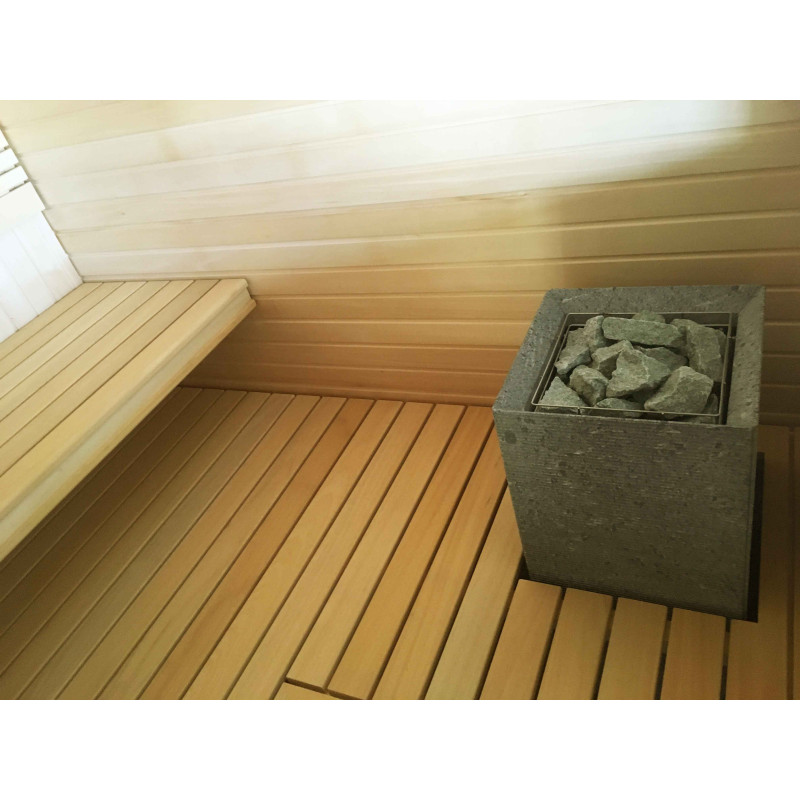 Pirties sienų ir lubų apdaila iš liepos medienos. Liepos dailylentės suteikia pirčiai daugiau šviesos, skleidžia malonų medienos kvapą. Gultams, nugaros atramoms ir tvorelei aplink krosnį pasirinktos aukštos kokybės abachi medienos dailylentės. Ši minkšta ir neįkaistanti mediena puikus pasirinkimas gultams, atramoms, ten, kur medis liečia odą, jos nedegindamas. Tai užtikrina komfortą ir puikų poilsį pirtyje. Gultai, atramos bei sienos nulakuoti ir nualiejuoti, pilnai paruošti ilgam naudojimui.