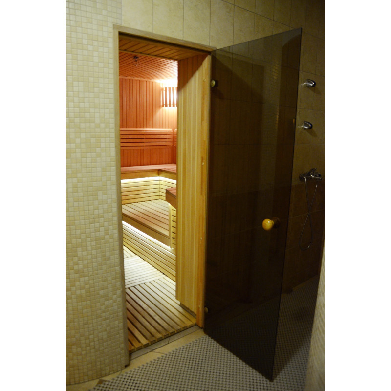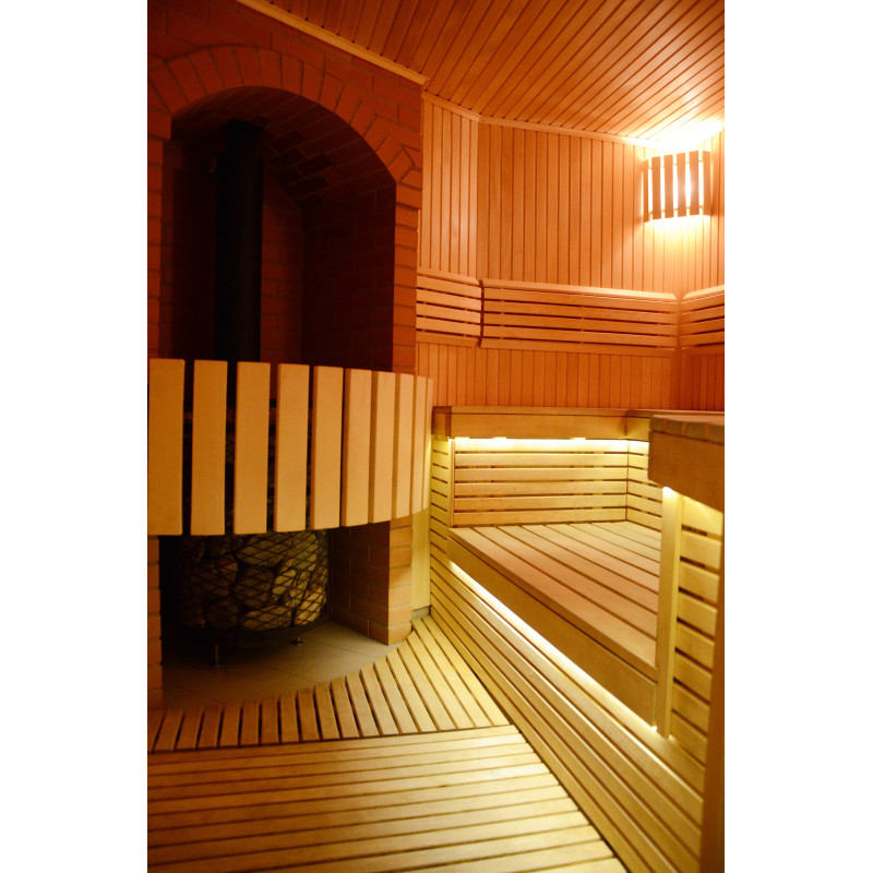 Pirties sienos ir gultai pagaminti iš aukščiausios rūšies liepos medienos dailylenčių, kurios pasižymi savo šviesia gražia spalva, skleidžia malonų natūralų aromatą. Iš medienos taip pat pagaminti šviestuvų gaubtai, nugaros atramos ir originali apsauginė tvorelė aplink krosnelę.