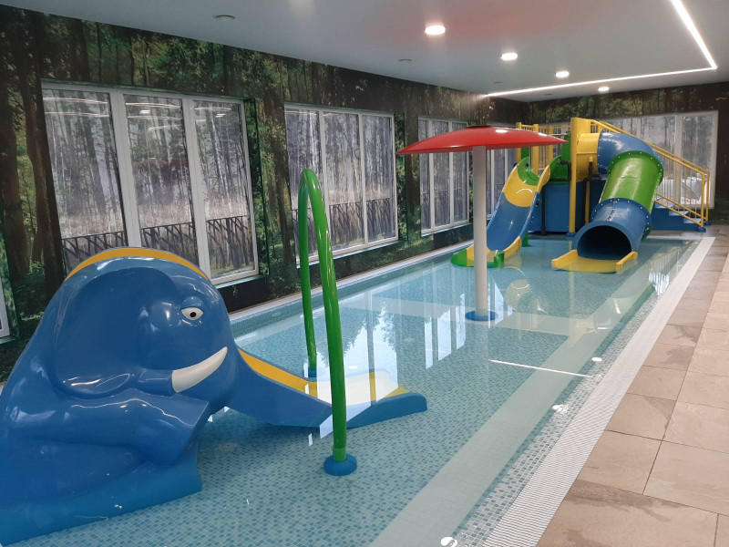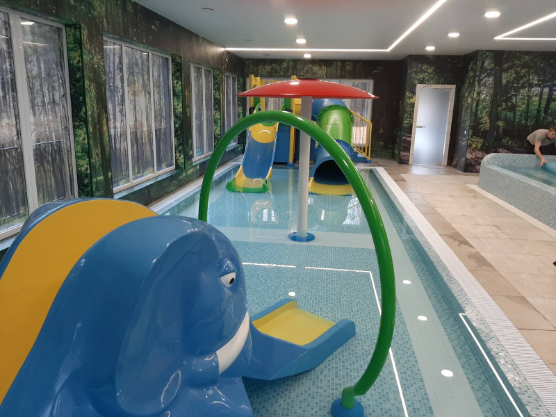 - Du vaikiški baseinai su nusileidimo kalneliais.