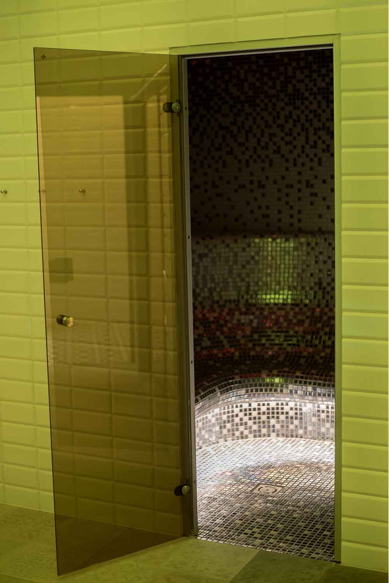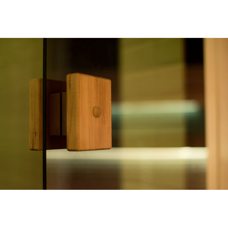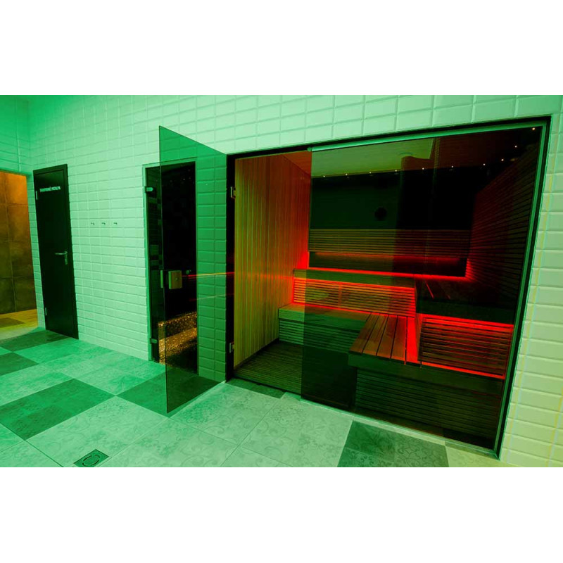 - kuriant vientisą stilių, saunoje įrengta stiklo vitrina išplečia erdvę ir sukuria lengvumo įspūdį, patalpai suteikia šviesos ir modernumo. Stiklo vitrinos stiklas - tonuotas, grūdintas, aliuminio rėme,