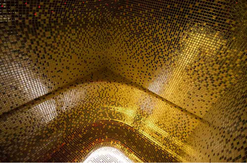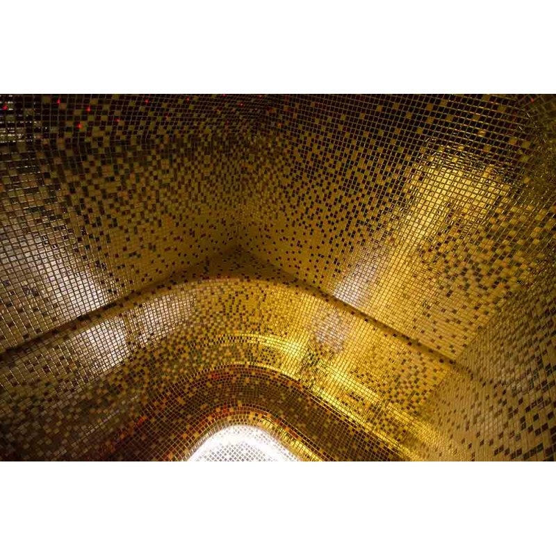 Garinės pirties vidaus paviršiai formuoti pagal individualų projektą iš putų polistirolo, naudojant ištisinio pjaustymo EPS stireną. Suklijuotos mozaikinės plytelės, pritaikytos pagal išlinkį ir užpildytos pilkos spalvos Schonox hidroizoliacija. Patalpos grindys šildomos. Durys - aliuminio stakta, grūdintas tonuotas stiklas. Garinės pirties įranga: