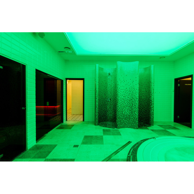 - jaukumui sustiprinti po nugaros atramomis ir gultais įrengtas LED RGB, drėgmei atsparus, apšvietimas,